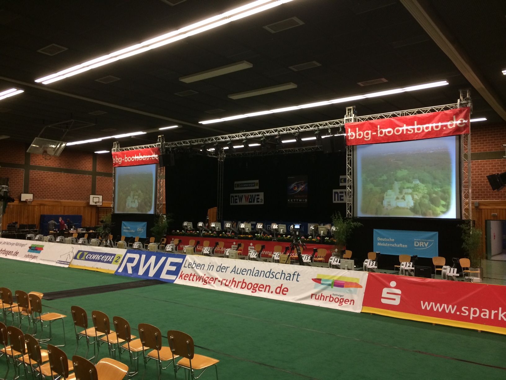 Auch die Medien berichteten äußerst positiv über dieses Event. Erstmals haben wir es in diesem Jahr sogar in die "BILD Zeitung" geschafft. Die Anzahl der helfenden Hände war einmal mehr überwältigend. Pünktlich am Freitag um 17 Uhr ging es los und das geplante Tageswerk war bereits um 19:59 Uhr abgeschlossen. Der Samstagsaufbau verlief ebenfalls nach Plan und die Abnahme durch das Bauordnungsamt erfolgte um 15 Uhr ohne Beanstandungen. Mit der eingespielten Routine wickelten wir diese Meisterschaft am Sonntag ab. Nachdem das letzte Rennen ausgerudert und um 17:45 Uhr die letzte Siegerehrung geschehen war, haben rund 80 Helfer die Veranstaltung in neuer Rekordzeit abgebaut. Um 19:58 Uhr wurde die letzte Traverse aus der Halle getragen.