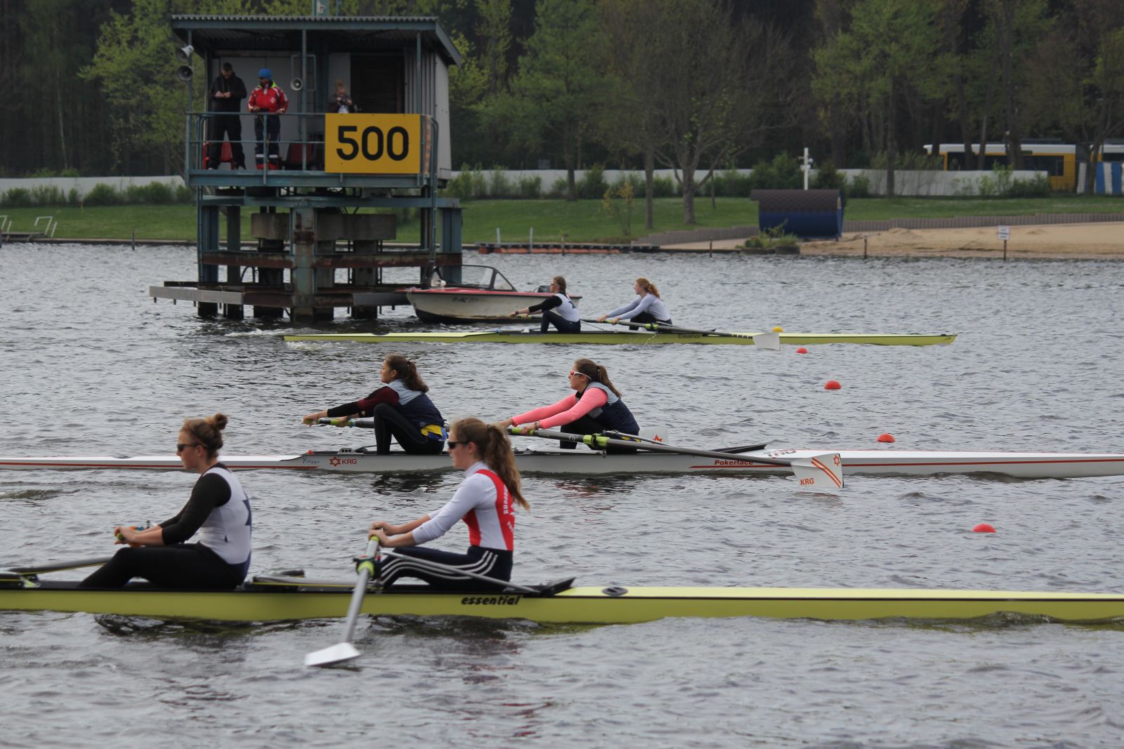 Den ersten Saisonsieg für die KRG fuhr die 17 Jährige Mia Müller ein. Sie siegte im Leichhtgewichts-Einer der 17/18 Jährigen in 27:03 Minuten mit einem Vorsprung von 22 Sekunden. Ihre Schwester Hanna tat es ihr gemeinsam mit Pia Kotecki im Leichtgewichts-Doppelzweier B gleich. im Zwei-Boote-Feld betrug ihr Vorsprung sogar zwei Minuten. Auf einem hervorragenden dritten Rang landete Darius Drenker im Leichtgewichts-Einer der 15/16 Jährigen. Karl Preuss, der in Oberhausen noch in der schweren Klasse der B-junioren startete, war mit 24:59 Minuten genau so schnell wie Darius, welches ihm den sechsten Platz einbrachte. Die Gespanne Aaron Quindeau/Janik Hilpüsch (Rang 7) und Fabienne Klung/Lenja Fütterer (Rang 8) konnten ebenfalls Top-Ten Platzierungen einfahren!