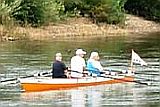 Die Herrentour hatte das Ziel Mülheim, wo bei der MRG zum Mittagessen angelegt wurde. Zunächst wurde aber in drei GIG-Vierern und einem GIG-Einer, die Aufgabe übernahm unser Wanderruderwart Michael Brockschmidt, von der KRG mit Umtragen am Kettwiger Wehr bis zum Mülheimer Wehr gerudert.