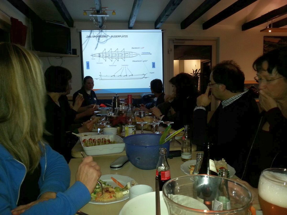 Gleich der erster Theorieabend am Freitag, den 24.01.2014 fand großen Anklang. Vierzehn Neumitglieder hatten sich angemeldet. Pünktlich um 19 Uhr eröffnete unsere Sportvorsitzende Sybille Meier den Infoabend. Wie wir es von Sybille nicht anders kennen, war sie bestens vorbereitet und hatte zur Powerpoint-Präsentation immer noch die ein oder andere Anekdote zu erzählen, die den Abend auflockerte. Gegen 22 Uhr endete der Abend mit der offiziellen Verleihung des Ruderpasses.