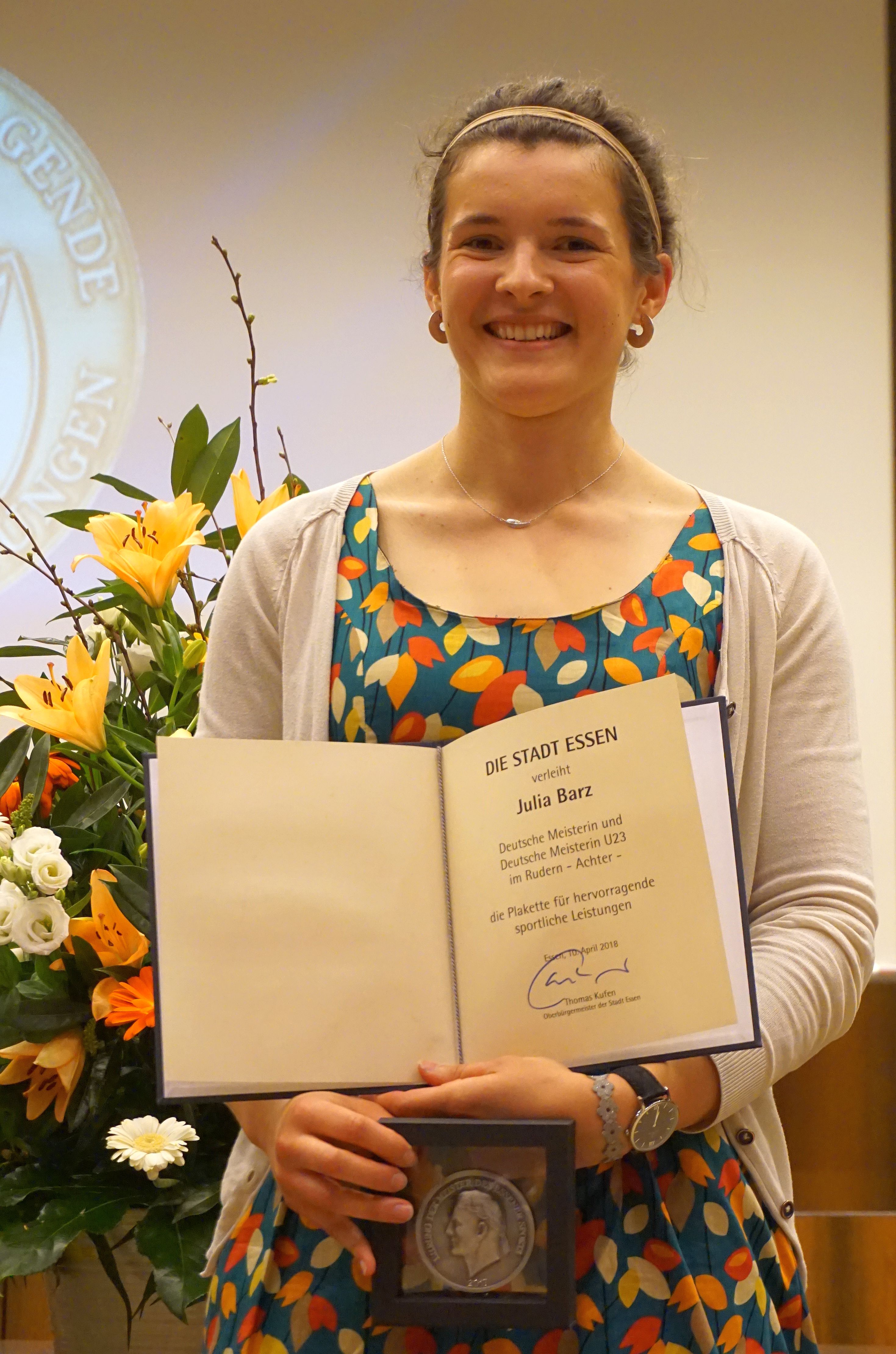 Unsere Trainingsleute tauschten zu diesem Anlass mal die Trainingskleidung gegen den feinen Zwirn und putzten sich mächtig heraus. Dorothee Beckendorff und Joscha Osthoff konnten die Auszeichnung leider nicht persönlich entgegen nehmen. Julia Barz, Ariane Drenker, Lena Siekerkotte, Celina Schneider, Magda Müller, Felix Liebich, Luca Weisbäcker, Paul Rasch, Paul Wilkening und Jan Philips nahmen die Auszeichnung für ihre Deutschen Meistertitel persönlich entgegen, stärkten sich später in geselliger Runde am Buffet und unterhielten sich mit erfolgreichen Sportlern anderer Vereine und Sportarten. Unsere Vorsitzende Sybille Meier wohnte der Verleihung bei und zeigte sich mächtig stolz. "Noch nie wurden so viele Athleten der KRG in einem Jahr ausgezeichnet!"