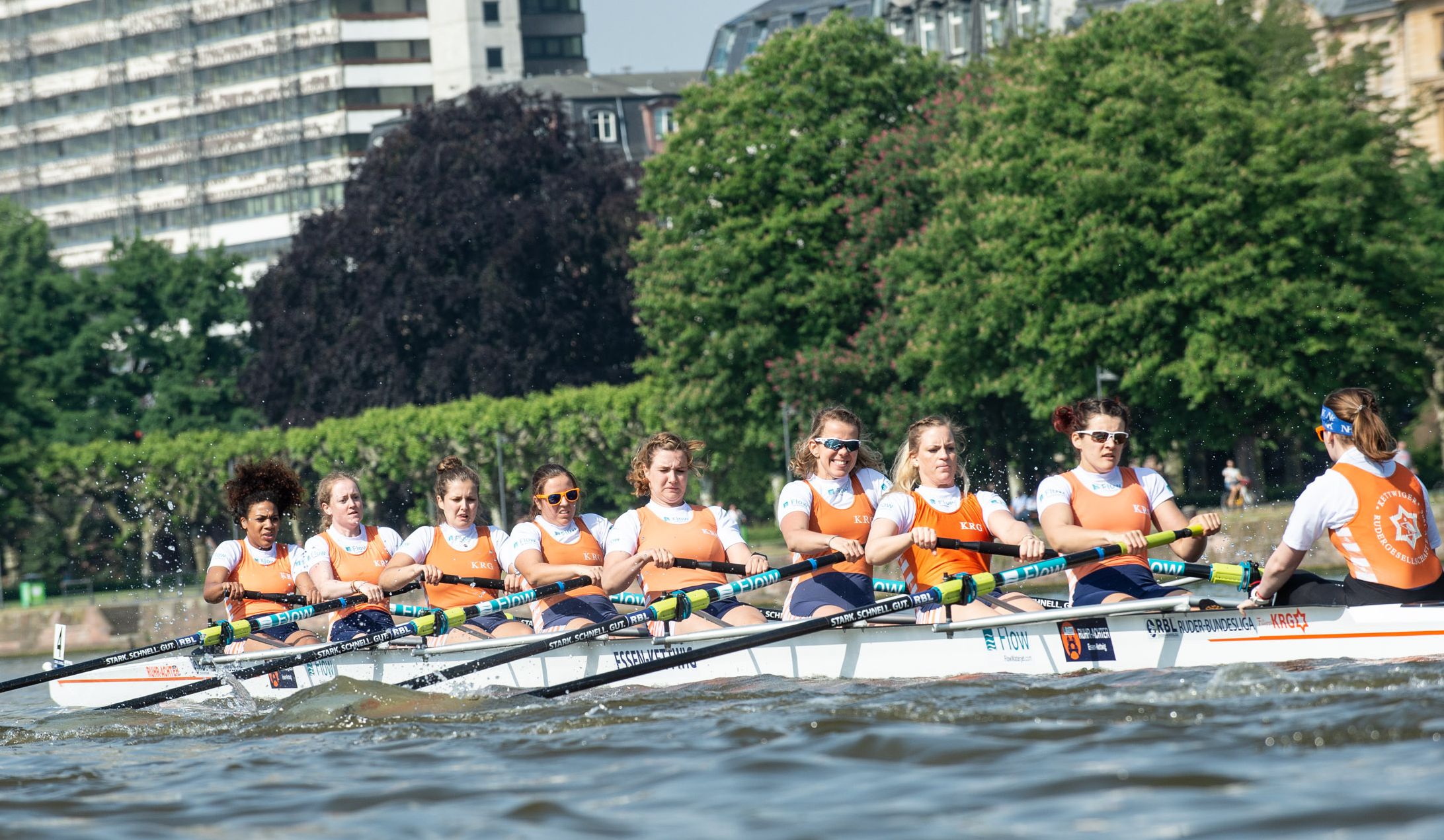 Punktgleich mit den „Main-Kriegerinnen“ des Hanauer RC Hassia auf dem dritten Rang in der Gesamtwertung liegend, trat die Mannschaft um Team-Captain und Steuerfrau Hanna Müller die weite Anreise nach Bad Waldsee an. Die Zielstellung war klar, die KRG-Mädels wollten sich unbedingt vor dem Team aus Hessen platzieren, um sich Bronze in der Gesamtwertung zu sichern um nicht mit Platz vier und der „goldene Ananas“ heimkehren zu müssen.