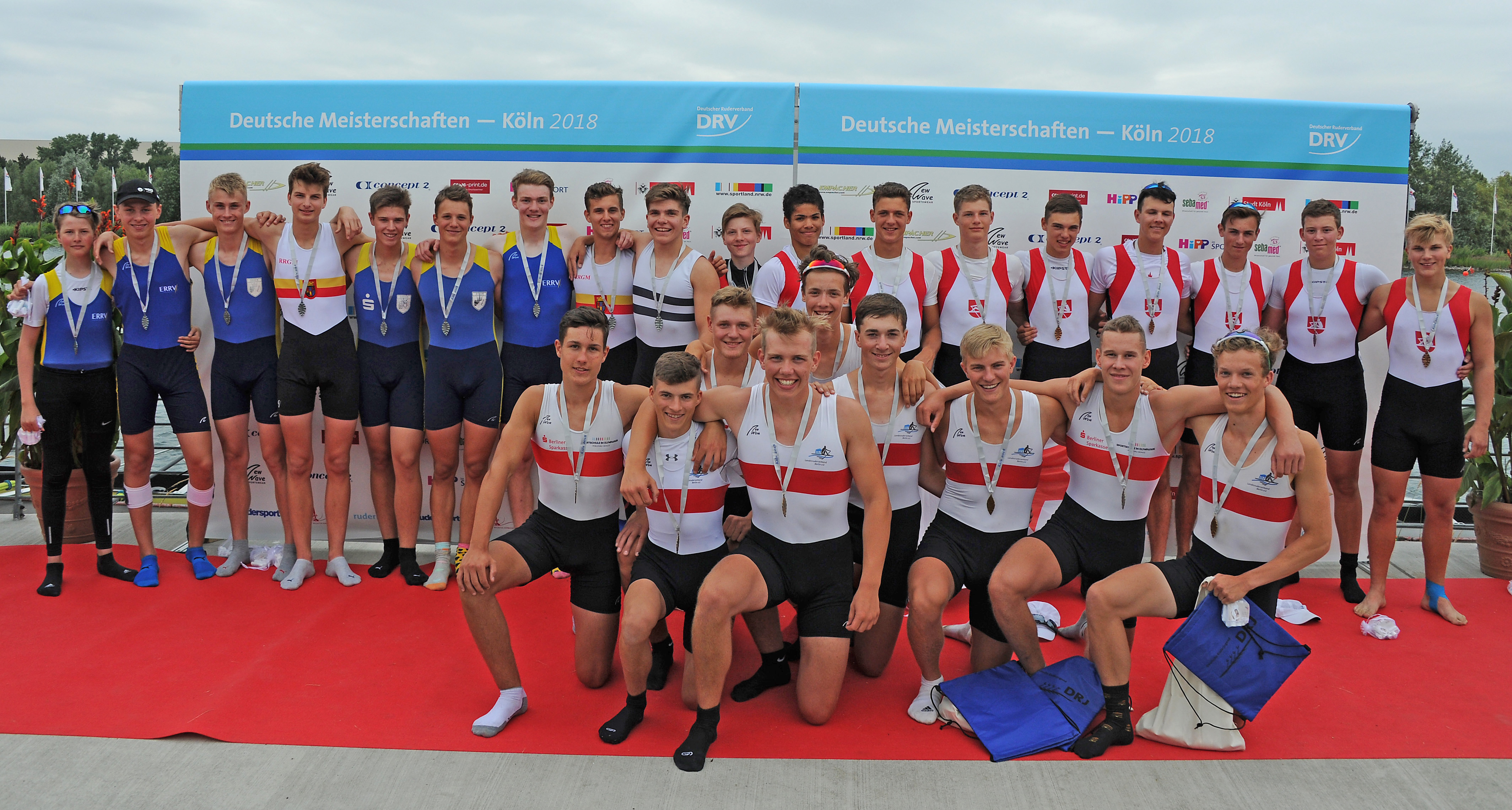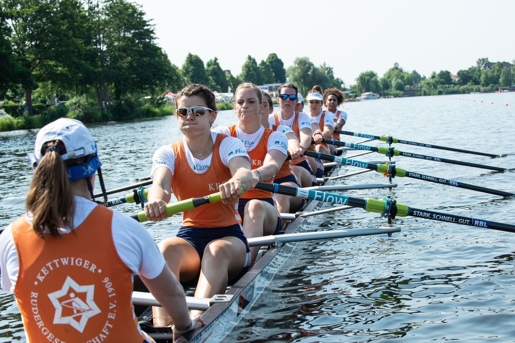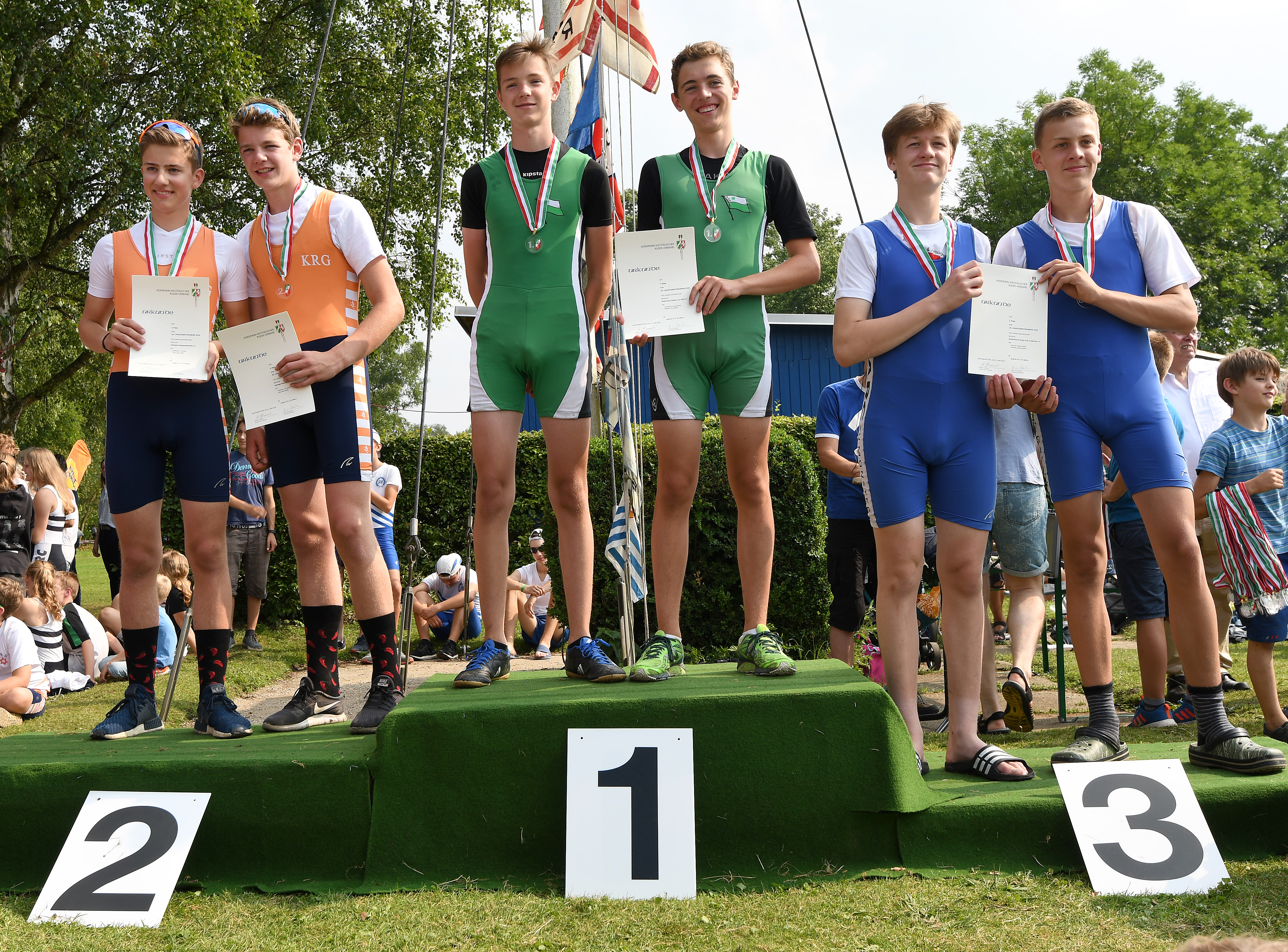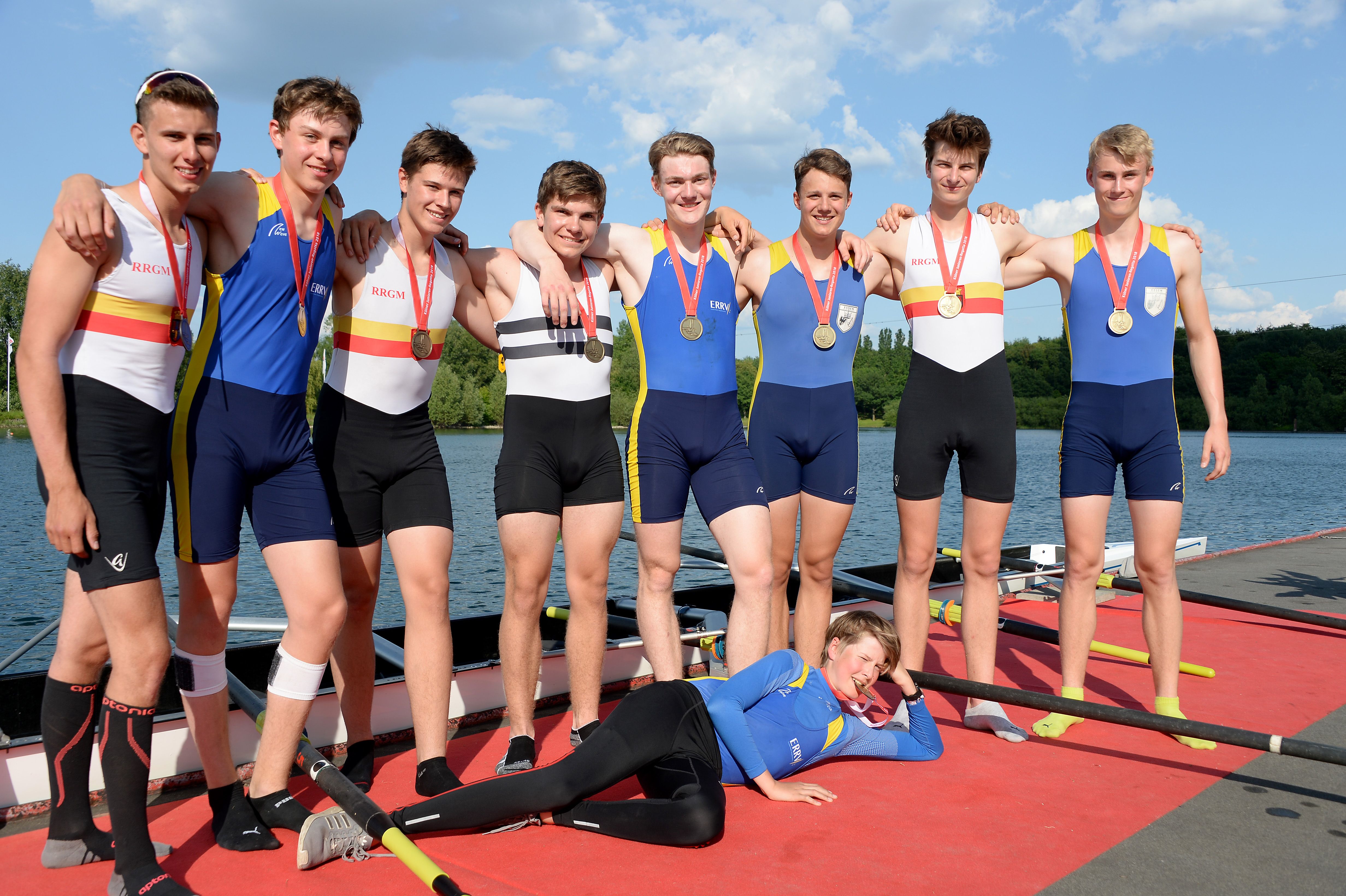 Bei den Junioren waren der Kettwiger Jan Philips mit Yannik Sohns (Steeler RV), Henning Käufer (ETuF), Benedikt Holländer (RaB) und Steuermann Emilia Gallinat (Steeler RV) im Doppelvierer nicht zu schlagen. Zuvor gab es eine Kettwiger Rochade. Jan Philips wurde im Boot der Startgemeinschaft durch seinen Kettwiger Vereinskollegen Paul Martin ausgetauscht und es regnete Silber im Vierer mit Steuermann. Gemeinsam gingen dann alle fünf komplettiert durch Raul Wolf, Bennet Gerritzen (beide Kettwiger RG) und Mathis Haske (RaB) im Achter an den Start der ebenfalls Silber gewann. Im Finale der Mixed Doppelvierers schwanden Lena Siekerkotte, Lehne Mührs (beide KRG), Yannik Sohns (Steeler RV) und Henning Käufer (ETuF) dann tatsächlich ein wenig die Kräfte. Silber hinter dem Boot der Frankfurter RG war aber auch ein toller Erfolg zum Abschluss.