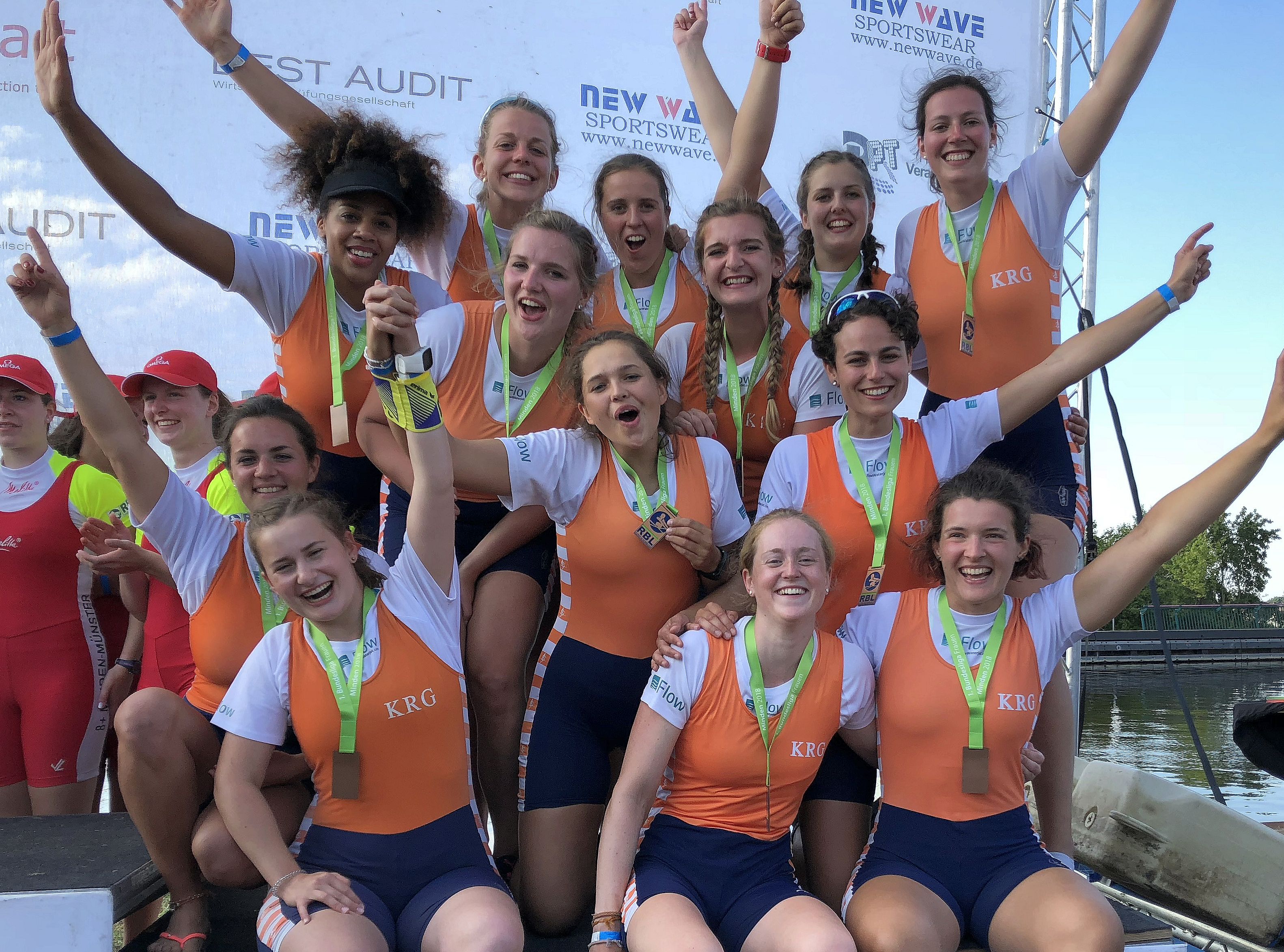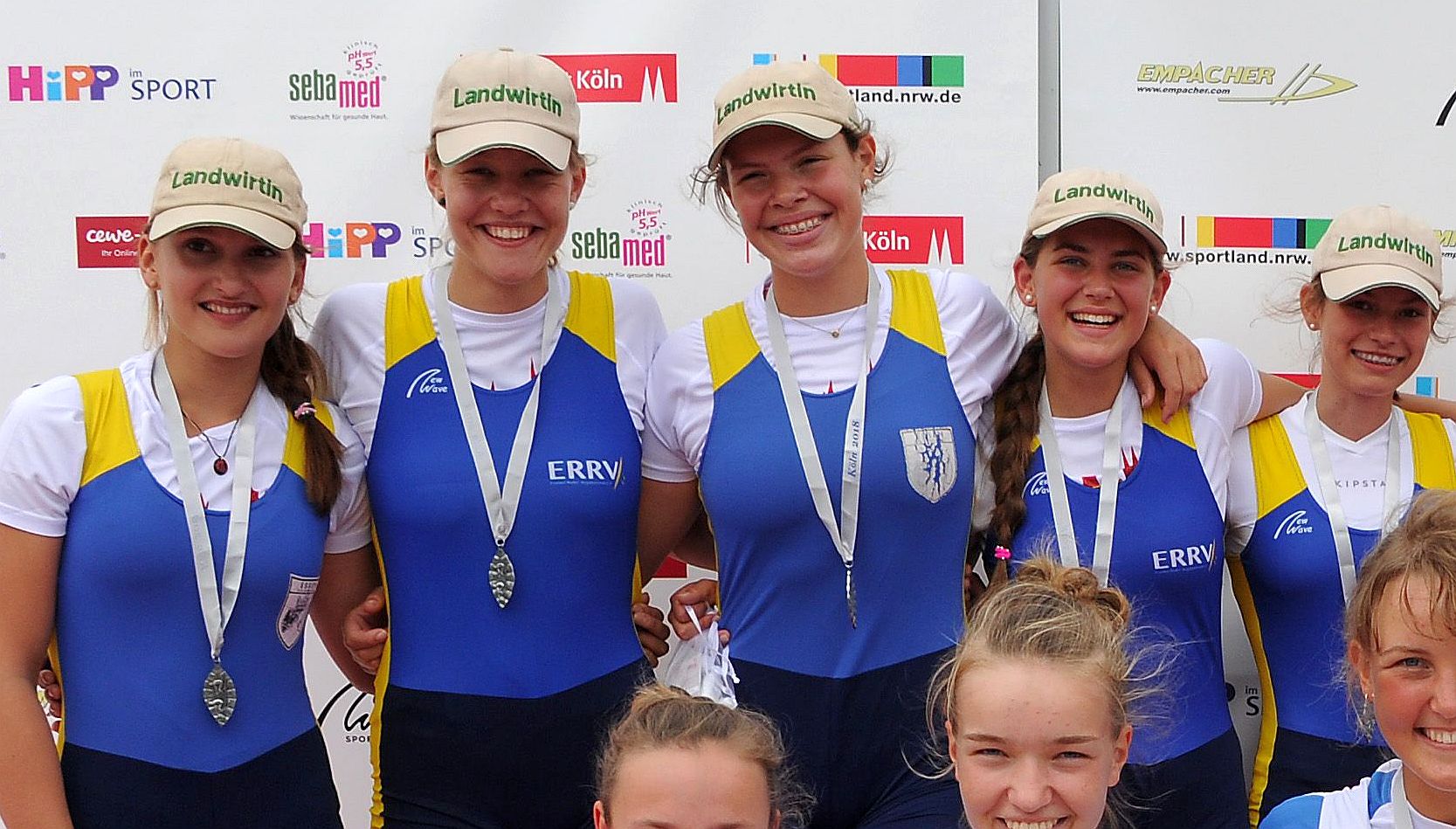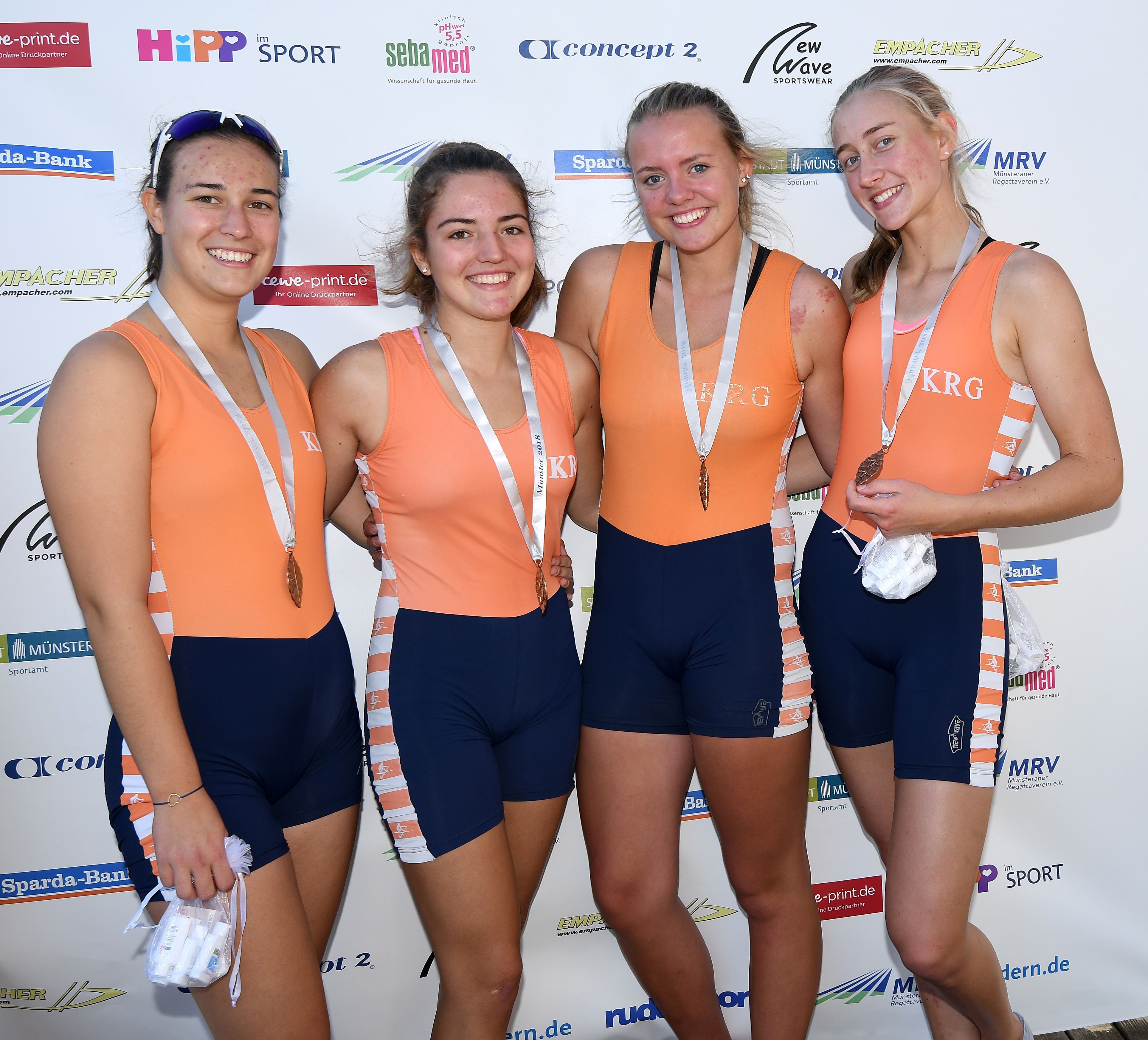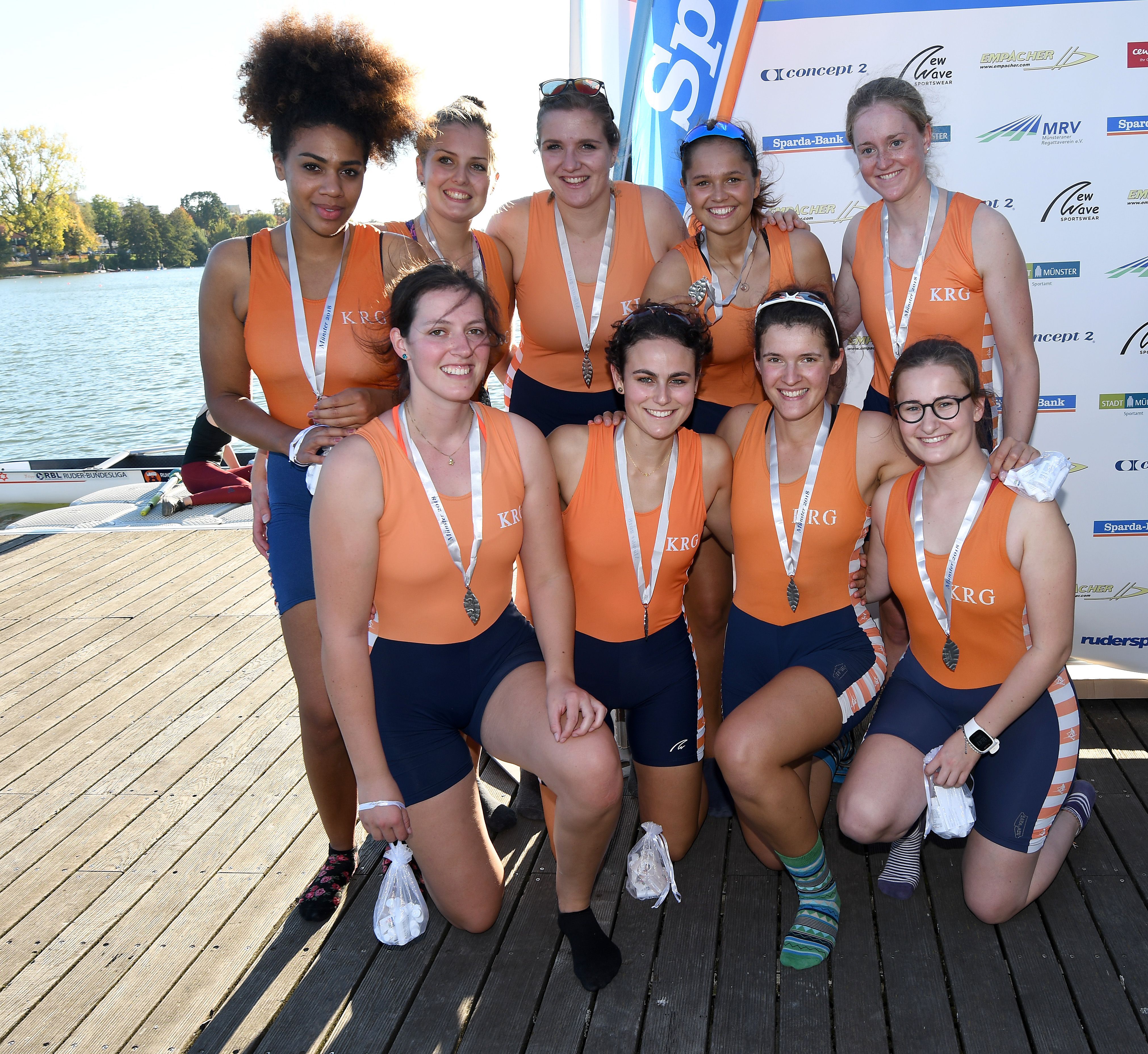 Der Bundesliga-Achter der KRG kehrte auch aus Münster mit einer Medaille zurück nach Kettwig. Der Ruhr-Achter gewann Silber in der Besetzung: Lenja Fütterer, Eva Hoos, Tabea Schick, Alicia Nti, Franziska Ott, Fabienne Klung, Julia Barz und Steuerfrau Hanna Müller.