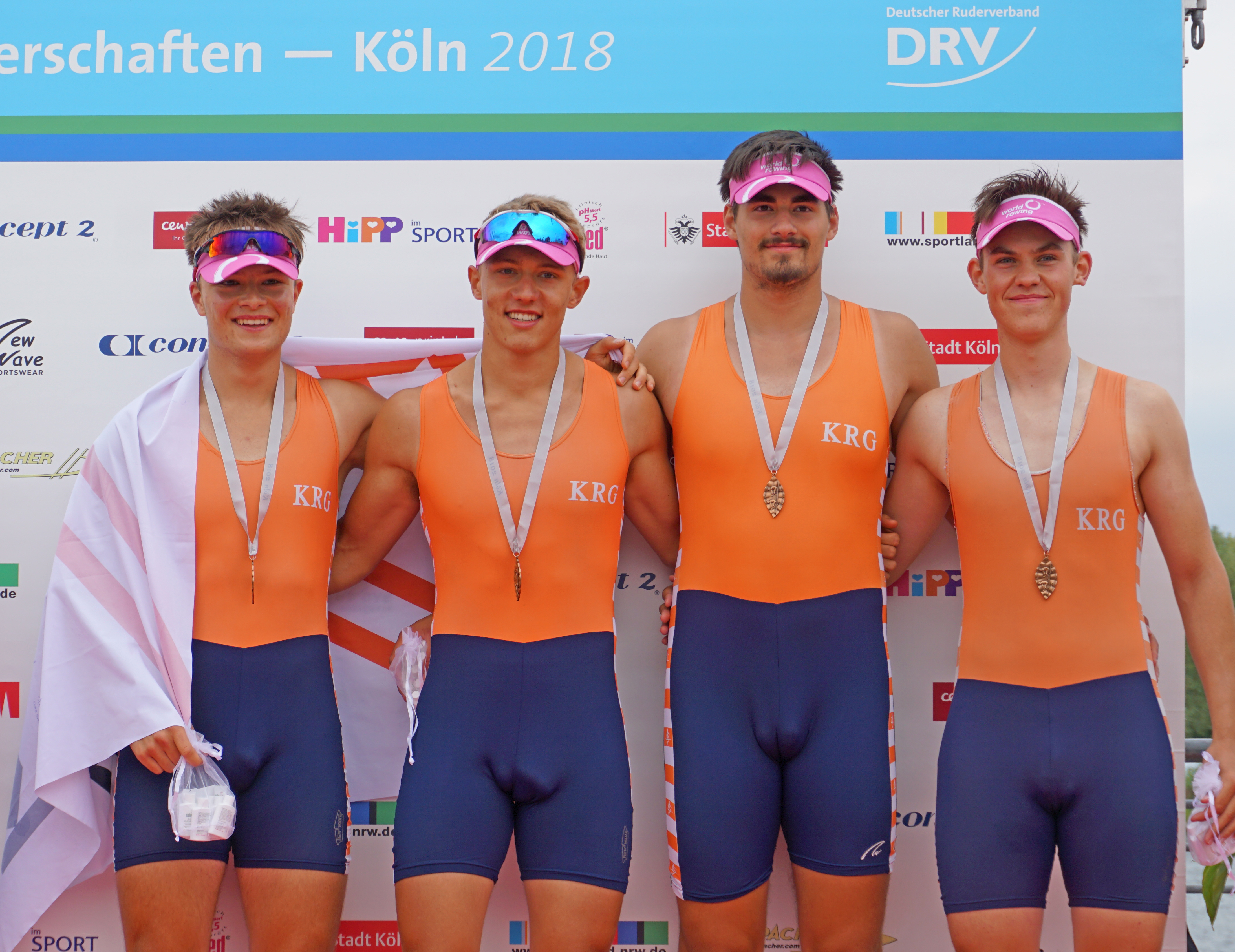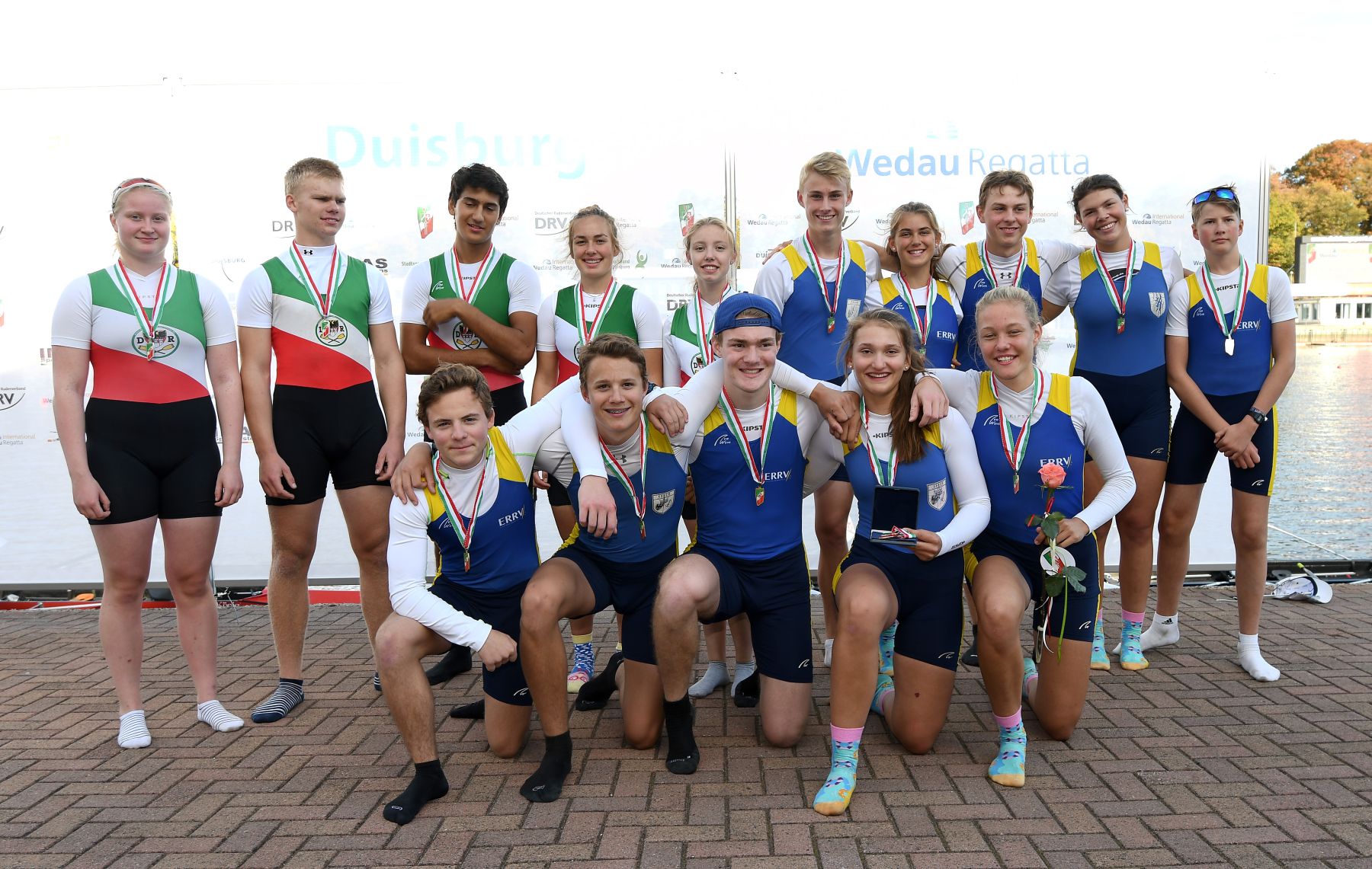 Im Junioren Mixed-Doppelvierer waren Nike Weber, Paula Burbott, Christoph Philips und Paul Rasch bei den 17/18 Jährigen nicht zu schlagen. Das Quartett der Kettwiger Rudergesellschaft gewann bei traumhaften Bedingungen auf dem Aasee schon die Vorentscheidungen souverän und ließ auch im Finale nichts anbrennen. Die Kettwiger Damen Weber und Burbott komplettierten sogar noch ihre Medaillensammlung. Im Doppelzweier gewann das Duo Silber und gemeinsam mit ihren Vereinskameradinnen Ariane Drenker und Celina Schneider Bronze im Doppelvierer.