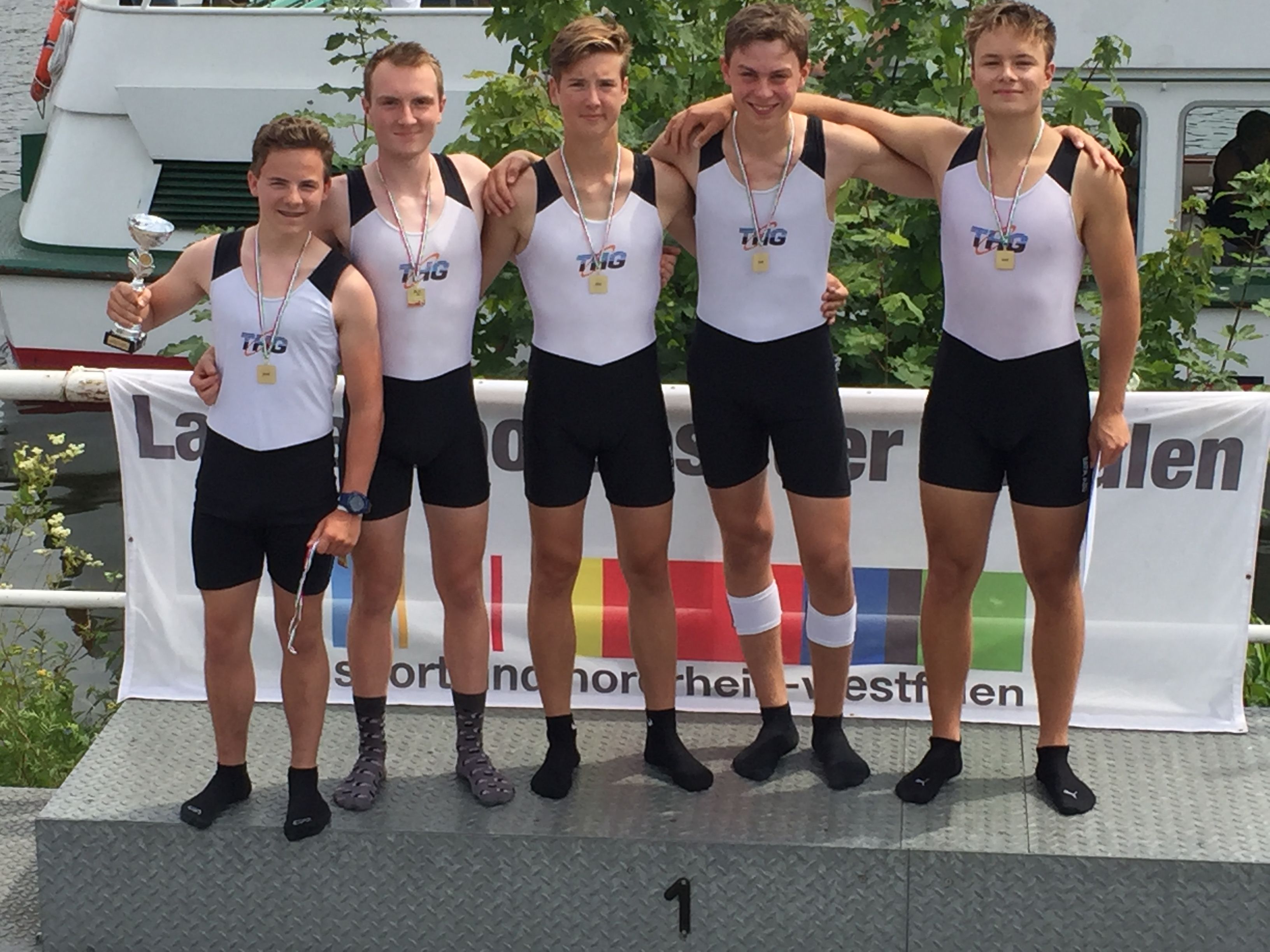 Mit Paul Rasch, Paul Martin, Jan Philips, Bennet Gerritzen und Steuermann Tim Garnjost hatte sich ein zweites THG-Team als Landesmeister für dieses Bundesfinale im Schüler-Doppelvierer qualifiziert. Obwohl Schlagmann Paul Rasch gesundheitlich angeschlagen war, kämpfte man sich von den 13 gemeldeten Booten bis ins Finale. Dort kam man allerdings über den 6. Platz nicht hinaus.