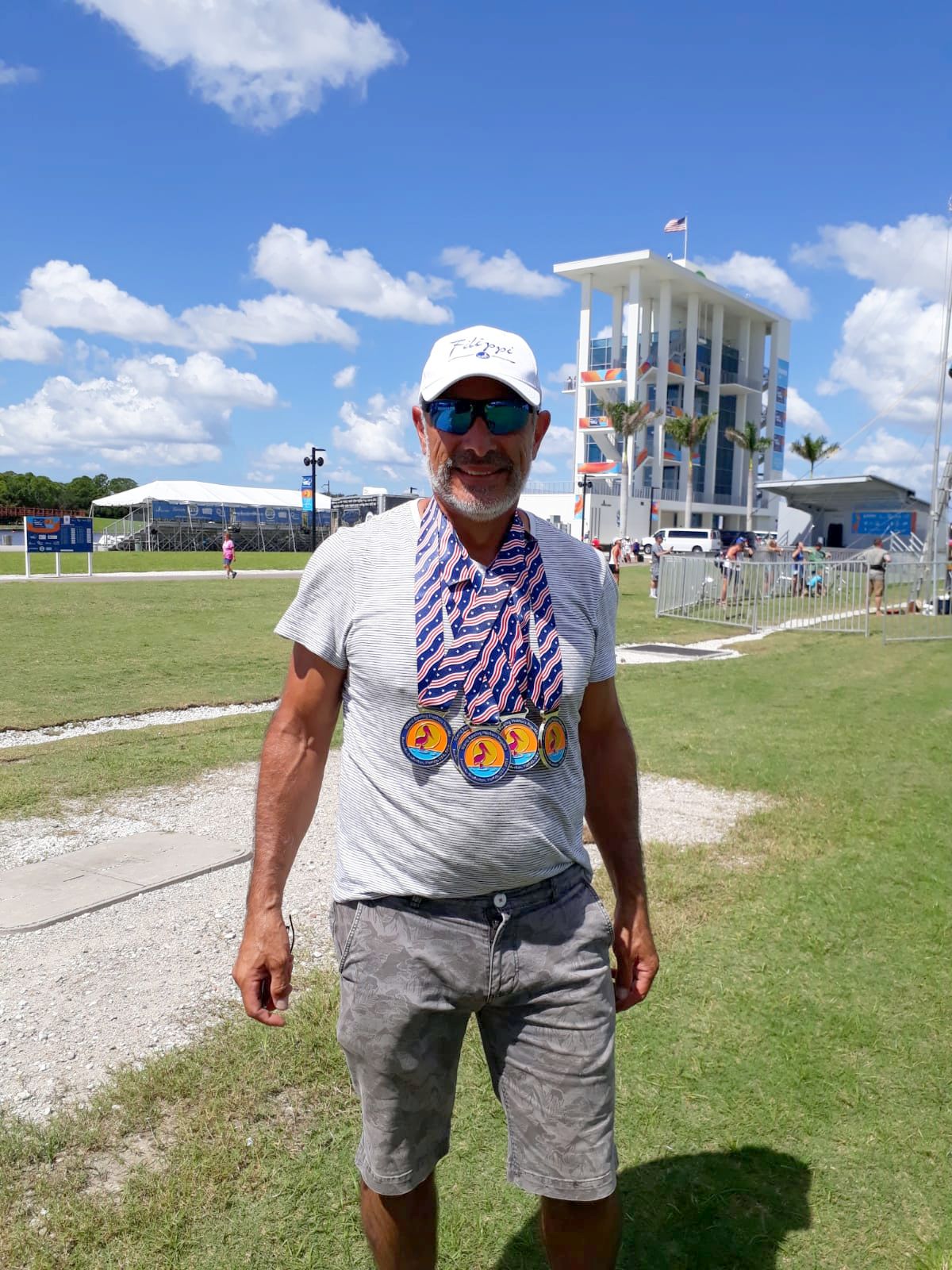 Unser Mexicaner Renato Chavez erfüllte sich einen Traum und nahm in Sarasota in Florida an der World Rowing Masters Regatta teil. Es war mit 35 Grad sehr heiß und es herrschte eine Luftfeuchtigkeit von bis zu 90% vor. Alligatoren schwammen in der Regattastrecke aber sie taten den Athleten nichts.