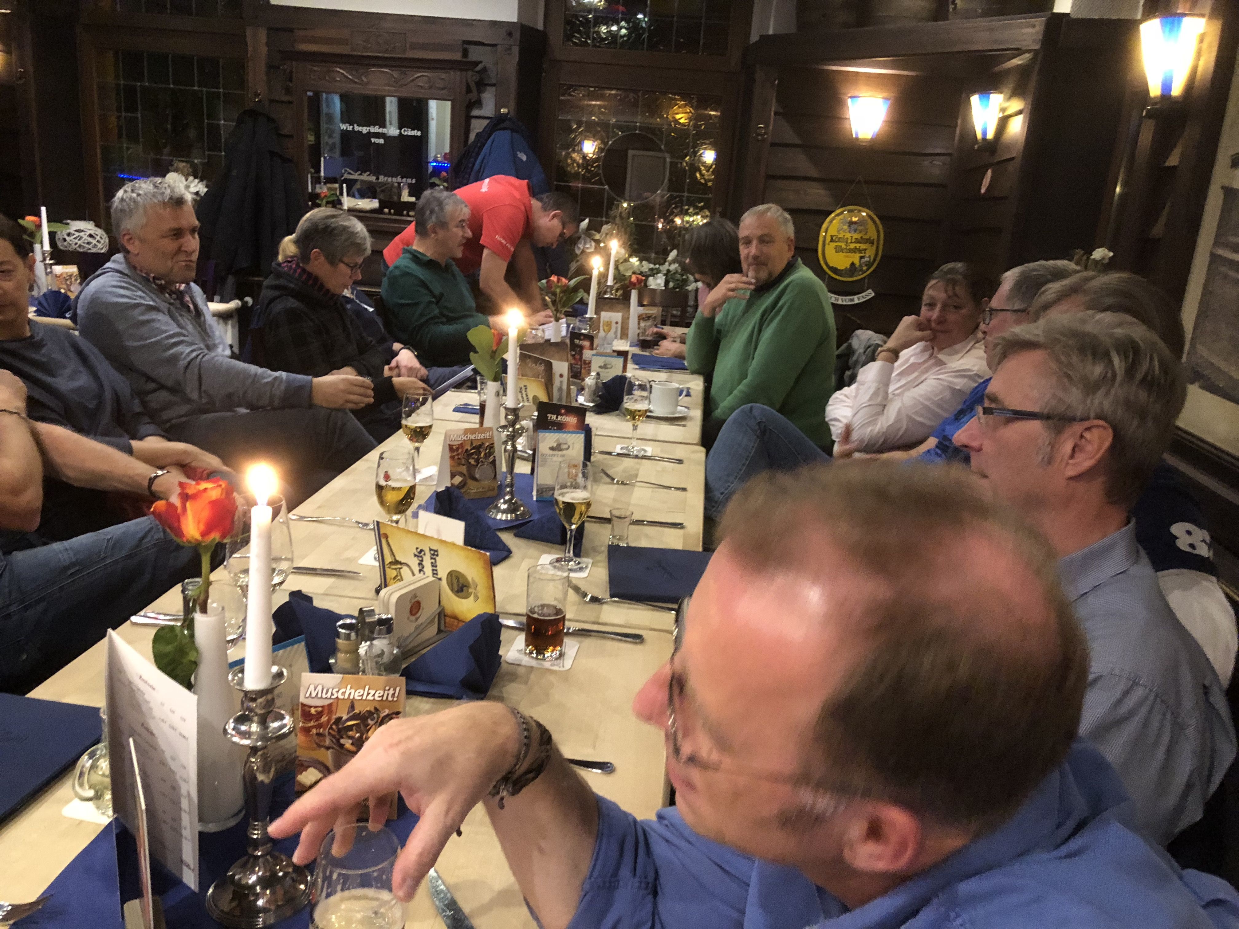 Gegen 17 Uhr traf man sich dann wieder gemeinsam zum Dämmerschoppen im "Frankenheim Brauhaus" an der Ringstraße. Leider waren die Damen nach der strapaziösen Wanderung und einige Regenschauern stark dezimiert, die Herren liefen fast in der kompletten Stärke auf. Es entwickelte sich ein sehr lebhafter und lustiger Abend, welcher für einige fast bis Mitternacht dauerte.