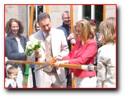 den neuen Gebäudeabschnitt in seiner Rede. Der Architekt Peter