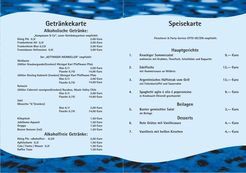 11.08.2006 Programm Empfang - Speisekarte Fest - Programm Sport-Sonntag