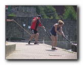 Anja, Annika L., Brocki, Ewald, Gitta, Manfred W., Peter V., Sarah und Sybille trotzten dem sehr heiß angesagten Wetter und starteten in Hattingen Richtung Kettwig. Immer wieder leichte Windböen machten die Temperaturen erträglich. Ja doch, ab und zu war es schon ganz schön heiß, wenn die Sonne so ohne Wolken vom Himmel knallte. 4 Bootsgassen und die Baldeneyseeumtrage gaben genug Abwechslung um die 35 km sehr kurzweilig zu machen. Die Pause in Steele und das Mittagessen am TVK taten dann noch ihr übriges.