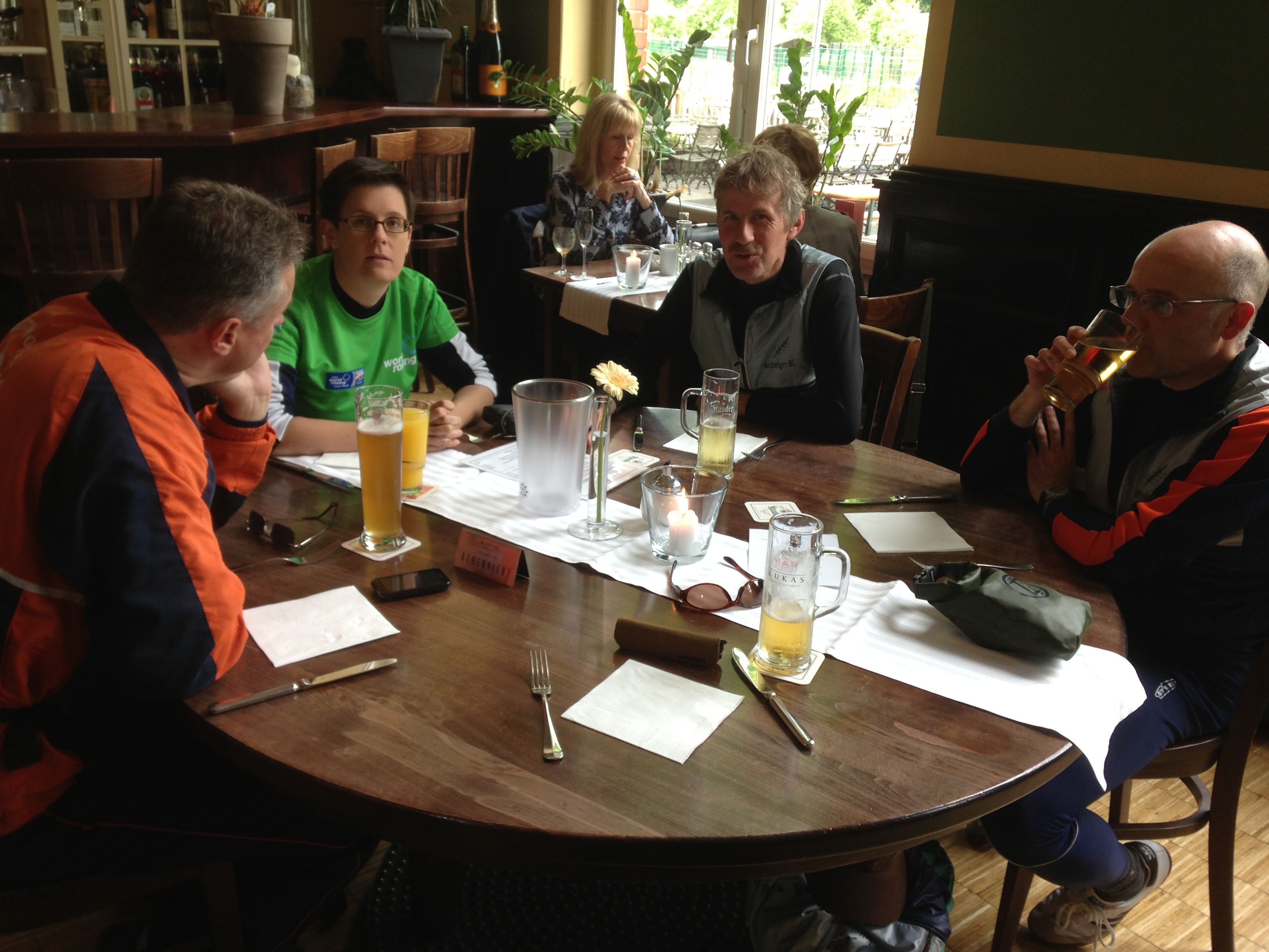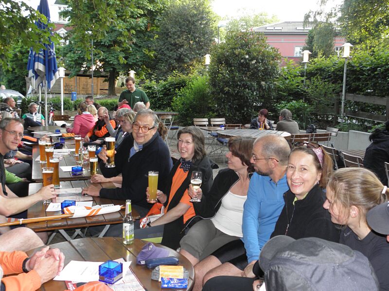 Zur letzten Etappe dieser Tour ging es dann zum "Frankenheim Brauhaus". Dort, wo einige KRG`ler sonntags ihren Stammtisch haben, waren für einen gemeinsamen "Dämmerschoppen" aller Tourteilnehmer Plätze reserviert. Pünktlich trafen die Herren ein und hatte freie Platzwahl. Mit leichter Verspätung dann die Frauen, die diese Niederlage aber gut verschmerzen konnten. Gegen 21 Uhr endete eine wieder einmal mehr als gelungene Tour.
