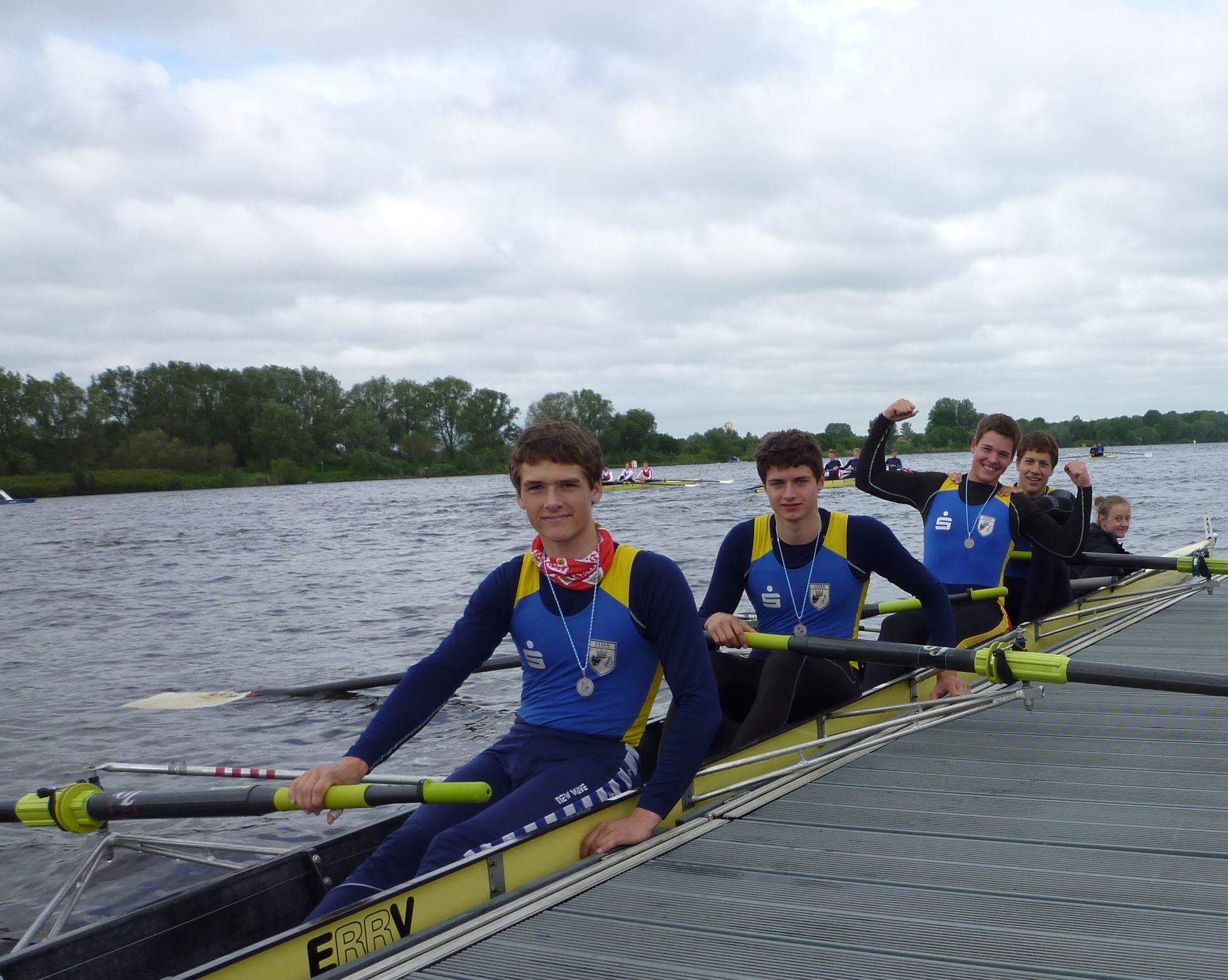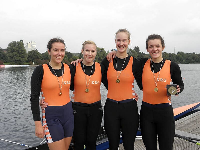 Auch sportlich konnten sich die Leistungen der Aktiven durchaus sehen lassen. Von den 109 teilnehmenden deutschen Vereinen landete die KRG auf Rang fünf. Die einzige Siegleistung erbrachte unsere Fabienne Knoke im Leichtgewichtsbereich unter 23 Jahre. In der offenen Leichtgewichtsklasse wurde sie mit Silber belohnt. Silber gab es auch für Sabine Chaves Torres bei den 50-54 Jährigen und die erst 12 Jährige Paula Burbott. Im Junior-Vierer wurden Imke und Lenja Fütterer sowie Aaron Quindeau und Florian Momm auch nur durch den RC Bessel Minden besiegt und holten ebenfalls Silber.