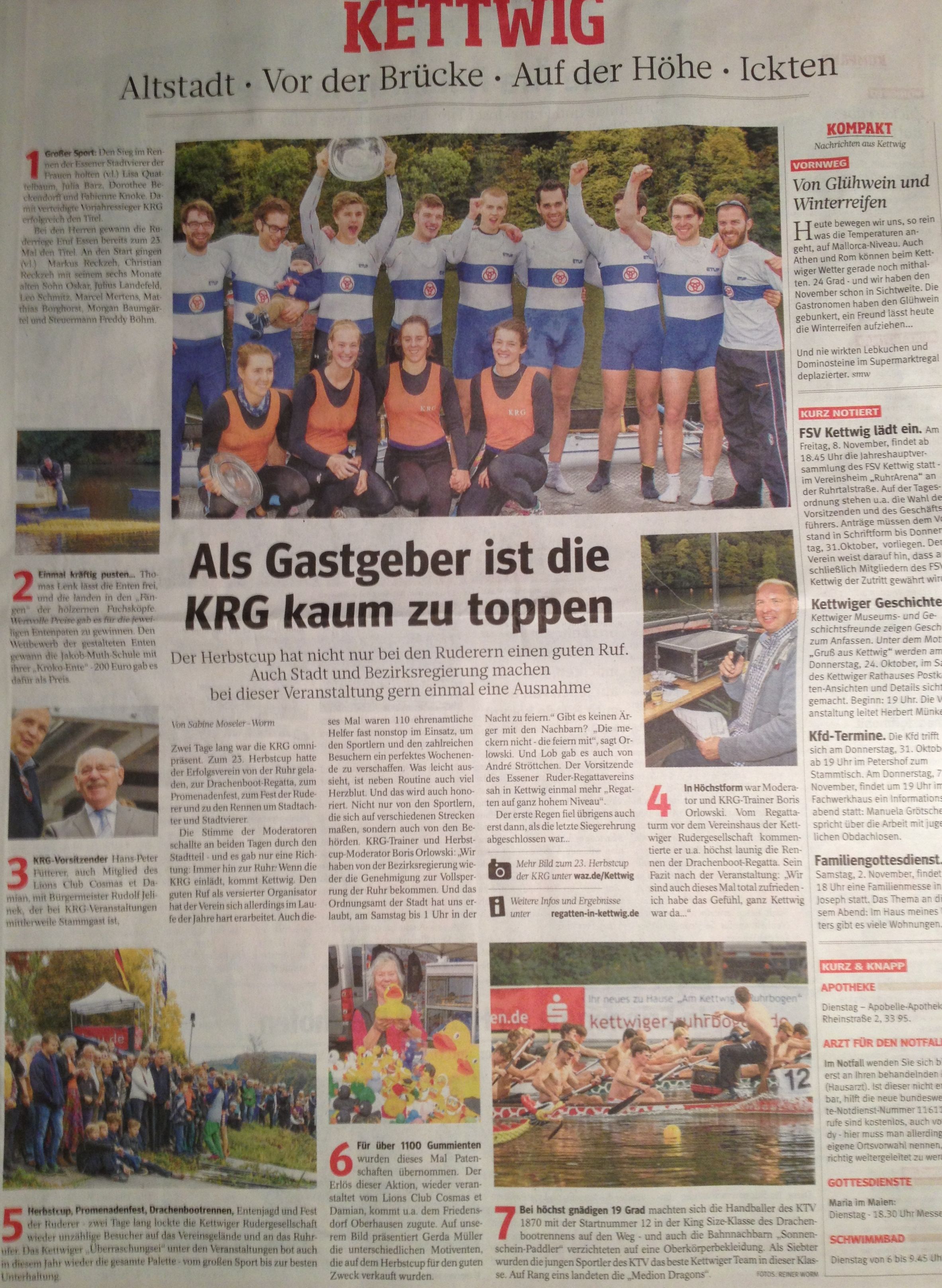 "Als Gastgeber ist die KRG kaum zu toppen!", so titelte die WAZ am heutigen Dienstag. Diese Auszeichnung geht ganz klar an euch liebe Mitglieder:
