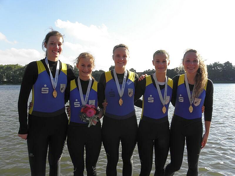Unsere Glückwünsche gehen aber auch an unser Mädels-Quartett: Lisa Quattelbaum, Fabienne Knoke, Dorothee Beckendorff und Julia Barz, die den Stadtmeistertitel im Frauen-Doppelvierer aus den beiden Vorjahren erfolgreich verteidigen konnten und damit in der Gesamtwertung auf 10 Siege davon ziehen konnten.