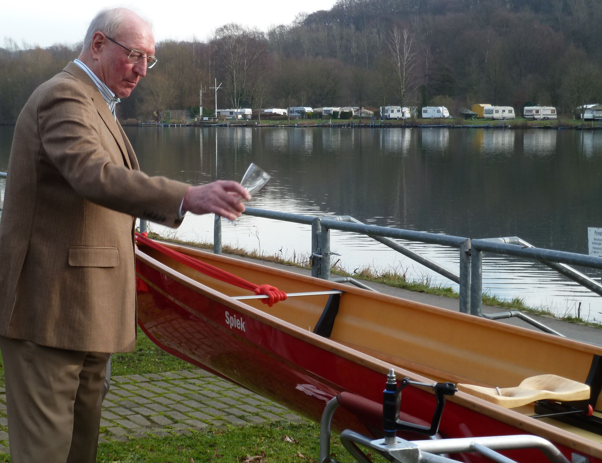 Dank der großen Unterstützung aus der Breitensport-Gruppe, der Sportstiftung der Sparkasse Essen und des Landessportbundes, konnten wir einen neuen Gig-Doppelvierer anschaffen, der in enger Zusammenarbeit zwischen unserem "Orle" und unserer Hauswerft " BBG Bootsbau Berlin" entwickelt wurde und einen besonders komfortablen Einstieg bietet. "Orle" taufte ihn auf den Namen Spiek. Die Ehrenrunde auf der Ruhr fand (wie bei der KRG gewohnt) bei herrlichem Sonnschein statt.