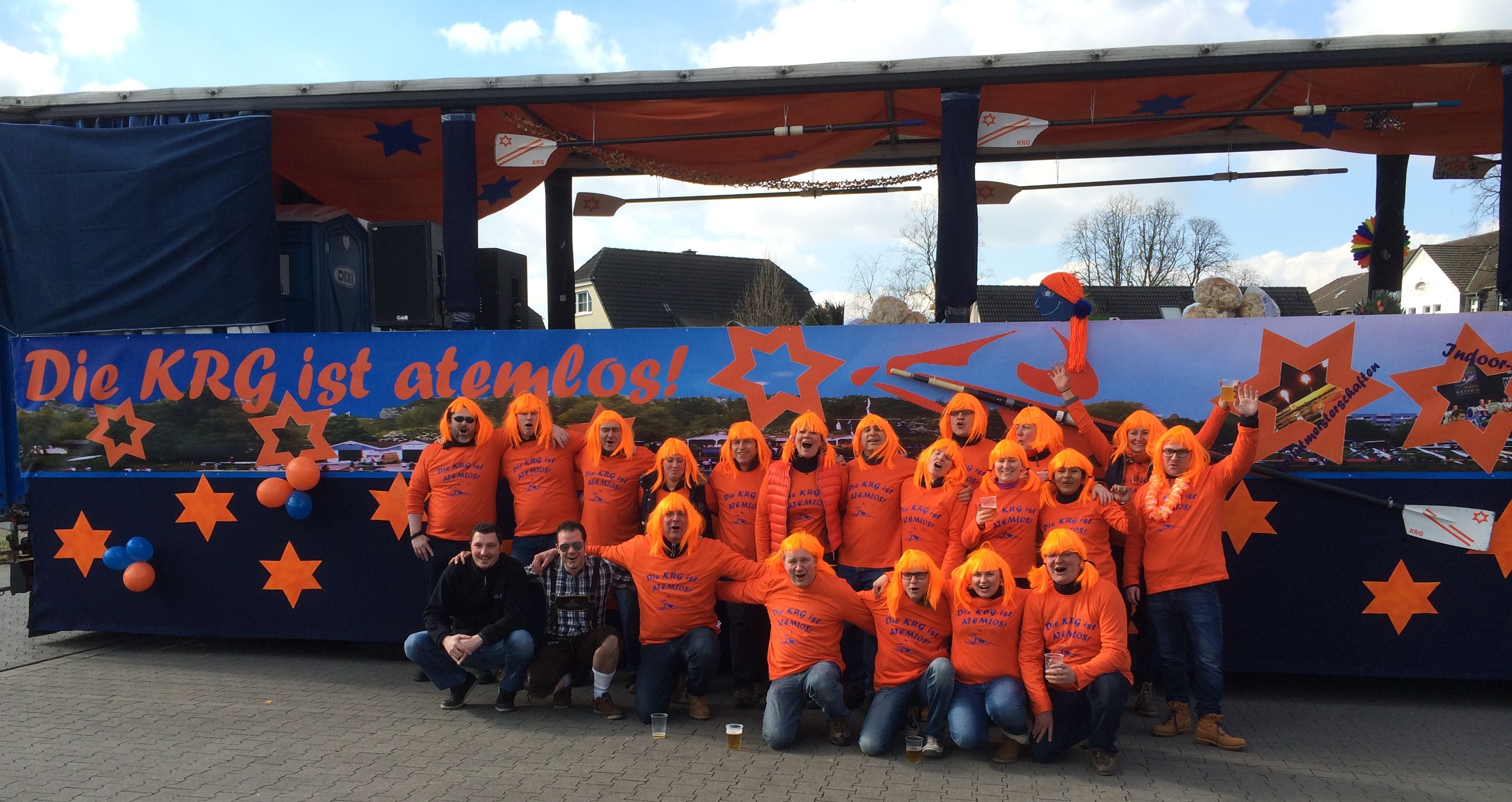 Erstmals gab es in diesem Jahr am vergangenen Sonntag wieder einen Karnevalszug in Kettwig. Auch in der KRG fanden sich zahlreiche Jecken, die sich gemeinsam um den Bau eines Prunkwagens kümmerten und zu den 24 Gruppen gehörten, die sich am närrischen Umzug beteiligten. Mit Marc Panzer aus Ratingen konnte ein Speditör begeistert werden, der einen Auflieger zur Verfügung stellte und uns gekonnt mit seinem Truck durch die engen Gassen kutschierte.