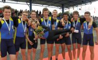 Und wieder ein Boot im Finale. Platz 4 hätte gereicht, aber obwohl man lange nur auf Platz 4 lag, machte die Mannschaft sich in der zweiten Hälfte auf und erruderte sogar Platz 3. |