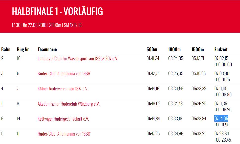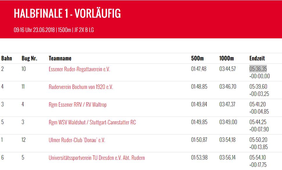 Vorlauf: 1. Platz, also direkt ind Halbfinale