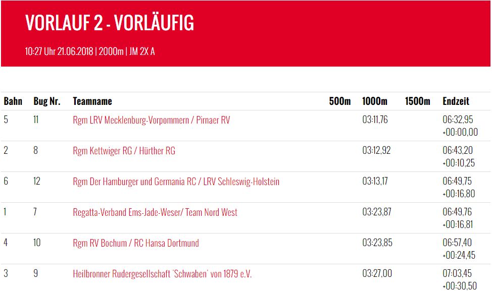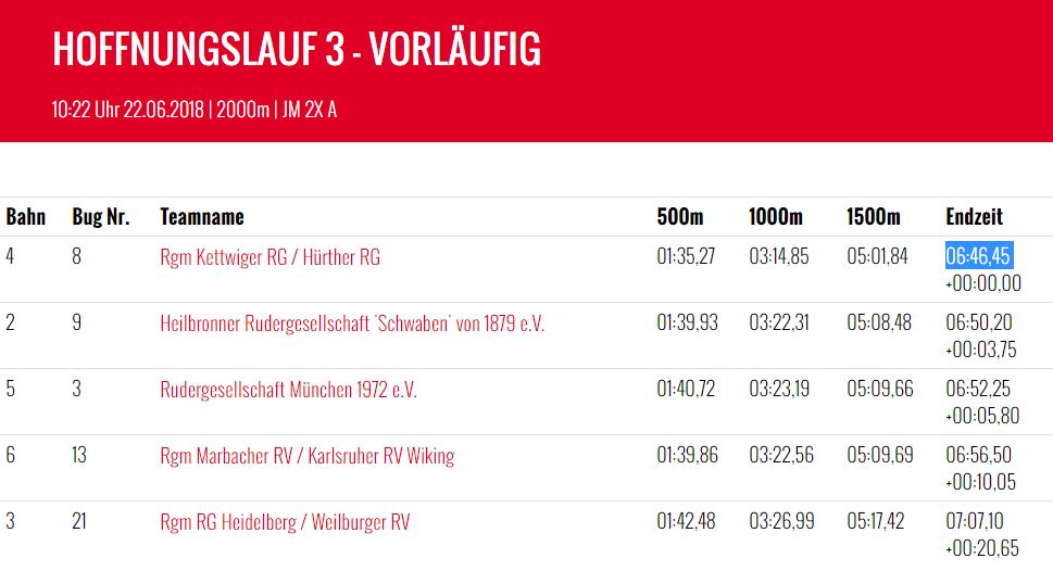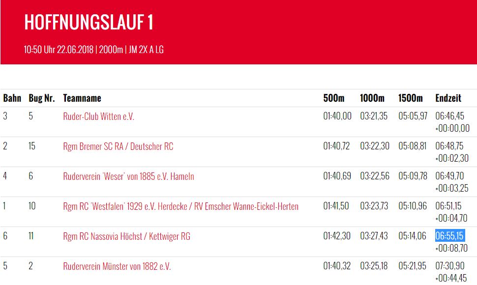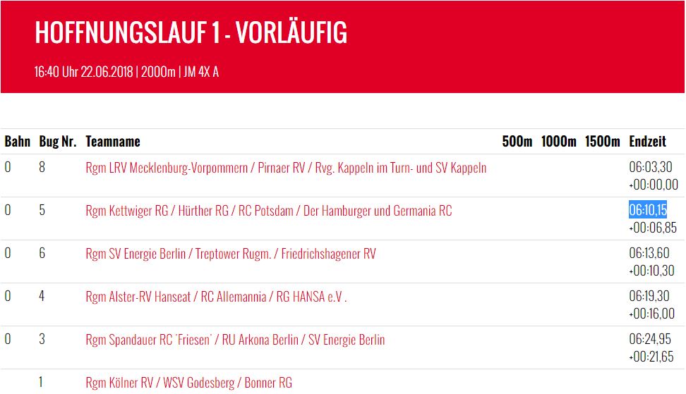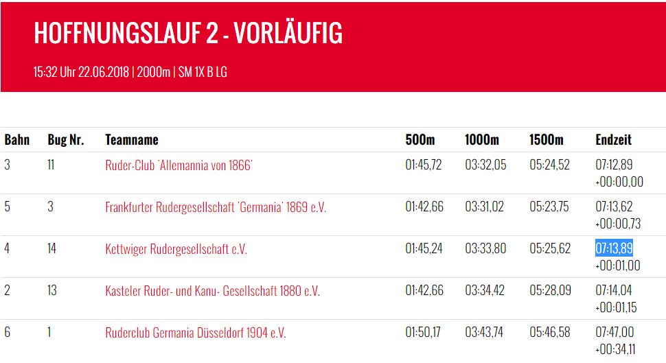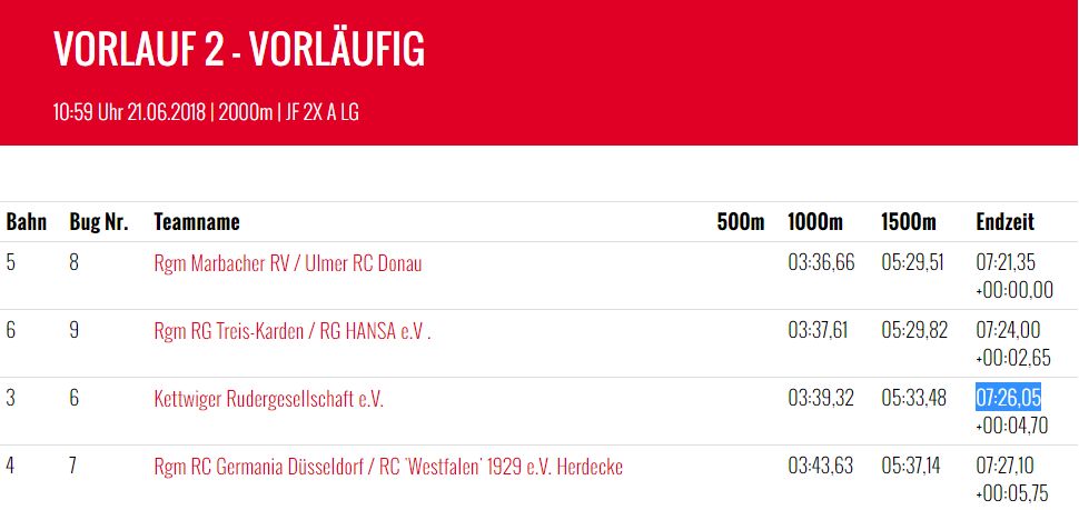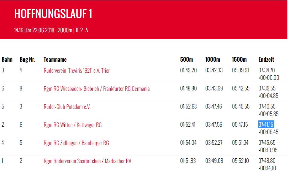 Vorlauf: 2. Platz, also Umweg über Hoffnungslauf