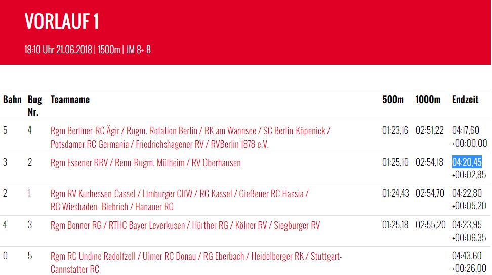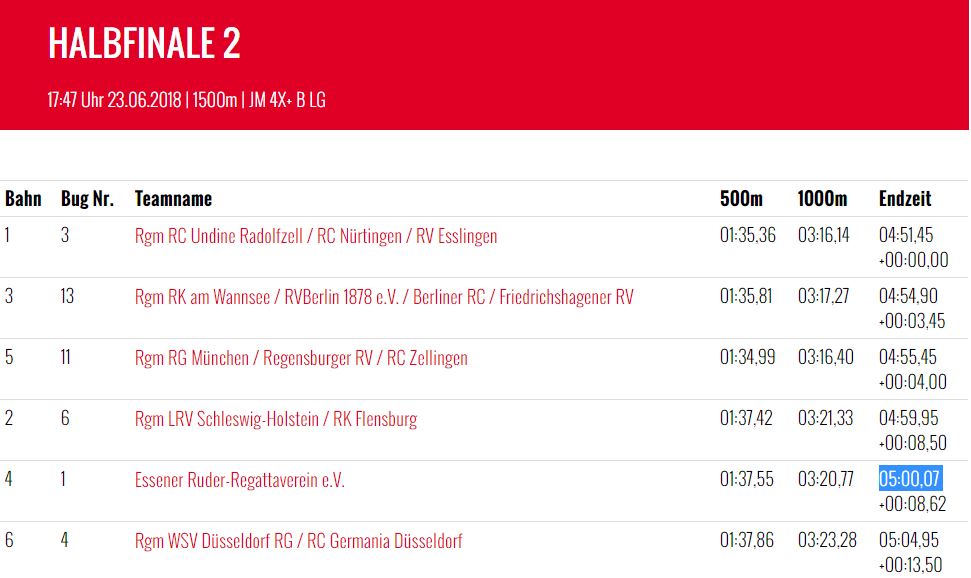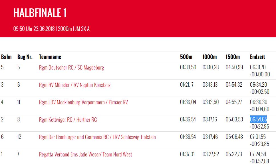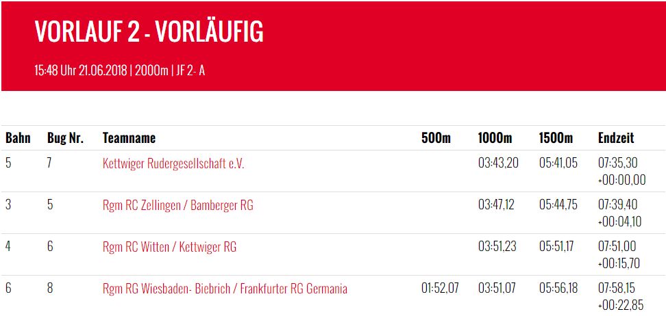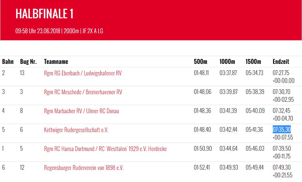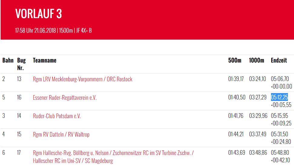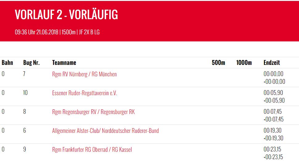 Vorlauf: 2. Platz, also Umweg über Hoffnungslauf