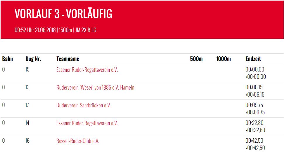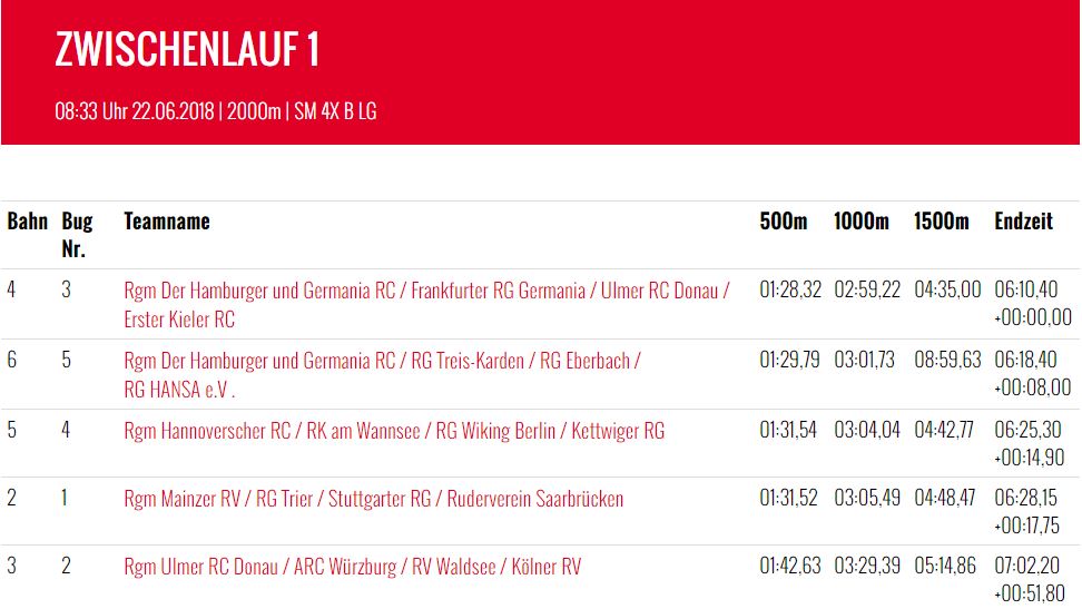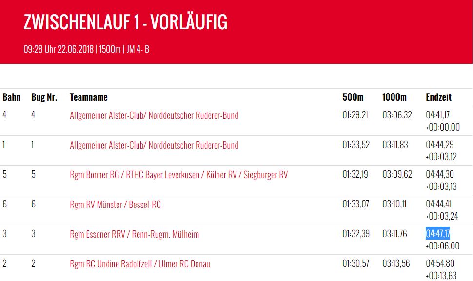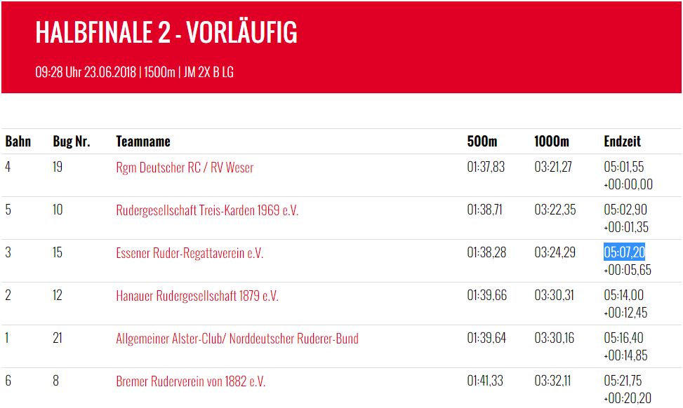 Bahnverteilung: 5. Platz, also eine Außenbahn
